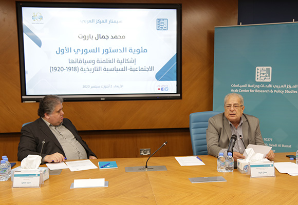 استهلّ المركز العربي للأبحاث ودراسة السياسات بالدوحة يوم الأربعاء 2 أيلول/ سبتمبر 2020 برنامج السيمنار البحثي الأسبوعي للعام الأكاديمي الجديد 2020/2021، والذي يتصادف مع الذكرى العاشرة لتأسيس المركز العربي. واستضاف السيمنار الأول الأستاذ محمد جمال باروت، المحرّر العلمي بالمركز العربي، الذي قدّم محاضرةً بعنوان "مئوية الدستور السوري الأول: إشكالية العلمنة وسياقاتها الاجتماعية - السياسية التاريخية (1918-1920)".