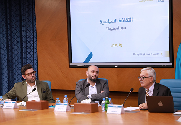 استضاف سيمنار المركز العربي للأبحاث ودراسة السياسات بالدوحة، يوم الأربعاء 16 تشرين الأول/ أكتوبر 2024، الدكتور رجا بهلول، أستاذ ورئيس برنامج الفلسفة في معهد الدوحة للدراسات العليا، الذي قدّم محاضرة بعنوان "الثقافة السياسية: سبب أم نتيجة؟". تناولت العلاقة السببية بين الثقافة السياسية والنظام السياسي، واتجاه هذه العلاقة.