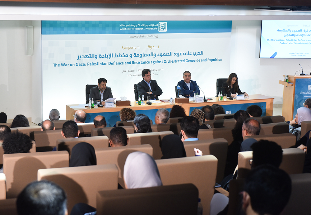 عقد المركز العربي للأبحاث ودراسة السياسات، يوم الثلاثاء 17 تشرين الأول/ أكتوبر 2023، ندوةً بعنوان "الحرب على غزة: الصمود والمقاومة ومخطط الإبادة والتهجير"، جاءت في جلستين بمشاركة تامر قرموط وغسان الكحلوت وآيات حمدان وأحمد قاسم حسين وطارق دعنا وخليل جهشان. قدّم المشاركون فيها قراءات في أسباب الحرب الجارية على غزة وتوقيتها وتداعياتها السياسية والإنسانية والاقتصادية من جهة، ورصد تطوّر إمكانات المقاومة الفلسطينية وقدراتها العسكرية ومدى تغييرها لقواعد الاشتباك وأزمة العقيدة العسكرية الإسرائيلية، من جهةٍ أخرى، فضلًا عن تناول الانتهاكات الإسرائيلية للقانون الدولي وحقوق الإنسان، والمخططات الإسرائيلية للتطهير العرقي والتهجير في قطاع غزة، وموقف الولايات المتحدة الأميركية من الحرب ومستوى انخراطها فيها.