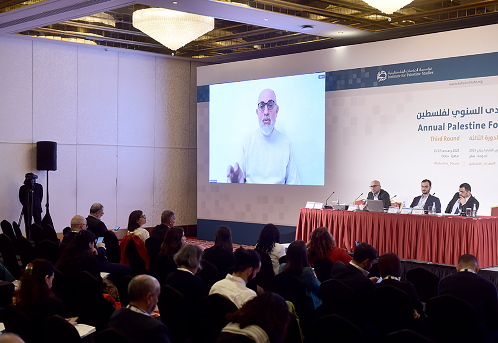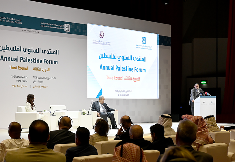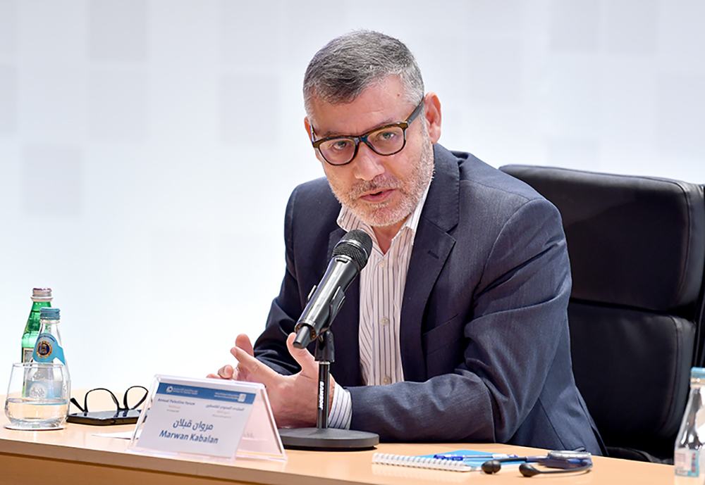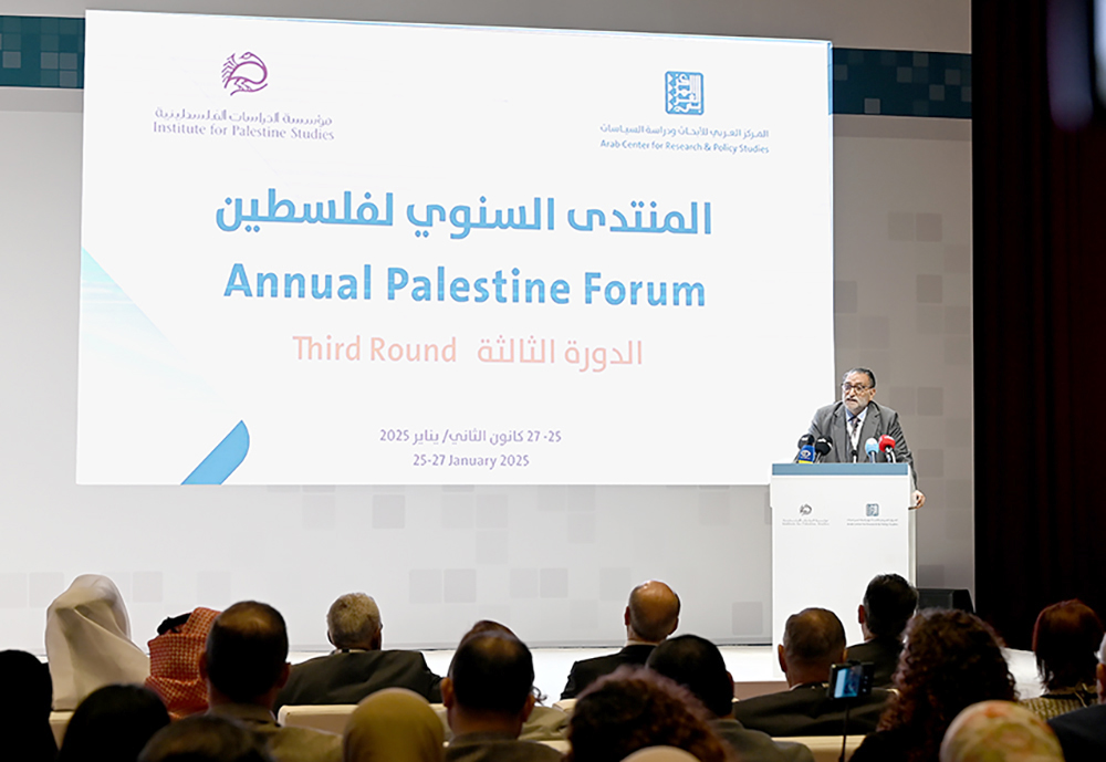 المحاضرة الافتتاحية للمنتدى، وتناول فيها التحديات التي تواجه الفلسطينيين في كافة أماكن وجودهم، وخصوصًا في قطاع غزة والضفة الغربية، وآثار حرب الإبادة، وكيفية التعامل معها للحيلولة دون تحقيق نجاح الرؤية الإسرائيلية في تحويل مأزقها الحالي، الناتج من ممارستها لإبادة جماعية، ولإقامتها نظام الأبارتهايد، إلى مأزق فلسطيني بحت، وأكدّ أهمية توحيد الصف الفلسطيني تحت مظلة وطنية جامعة لأخذ زمام الأمور وترجمة التضامن الدولي والعربي إلى فعل سياسي، وإلّا فإن القضية الفلسطينية تسير في نفقٍ لا يُرى في آخره نور.