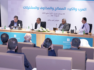 تركزت الأوراق المقدمة في الجلسات الأربع لليوم الأول من مؤتمر "العرب والكرد: المصالح والمخاوف والمشتركات"، ضمن محورين رئيسين، أولهما في محاولة تبيان نشأة المسألة الكردية تاريخيا في نطاق الدول العربية الناشئة بعد الدولة العثمانية وبعد الانتداب الأجنبي، ثم التركيز في ثانيهما على التطور التاريخي للقضية الكردية في العراق. وتخصص لتطور المسألة الكردية في سورية جلسة خاصة أيضا ضمن اليوم الثاني من برنامج أعمال المؤتمر.
