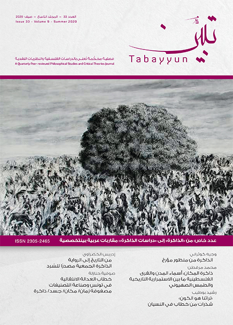 صدر عن المركز العربي للأبحاث ودراسة السياسات العدد الثالث والثلاثون من الدورية المحكّمة "تبيُّن للدراسات الفلسفية والنظريات النقدية". واشتمل العدد على ملف خاص حول الذاكرة ودراساتها، متضمنًا خمس دراسات، هي: "الذاكرة من منظور مؤرخ" لوجيه كوثراني، و"ذاكرة المكان: أسماء المدن والقرى الفلسطينية ما بين الاستمرارية التاريخية والطمس الصهيوني" لمحمد مرقطن، و"’تراثنا هو الكون‘: شذرات من خطاب في النسيان" لرشيد بوطيب، و"من التاريخ إلى الرواية: الذاكرة الجمعية مصدرًا للسّرد" لإدريس الخضراوي، و"خطاب العدالة الانتقالية في تونس وصناعة التصنيفات: مصفوفة زمان/ مكان/ جسد/ ذاكرة" لصوفية حنازلة. وتضمن العدد ترجمتين؛ الأولى لمقالة "الارتقاء العالمي للذاكرة" لبيير نورا نقلتها إلى العربية ميرفت أبو خليل، والثانية لمقالة "ترحاليون رقميون: الأوطان-الأرض والأوطان-الصفحات" لصبحي الزبيدي، ترجمها عبد الرحيم الشيخ.
