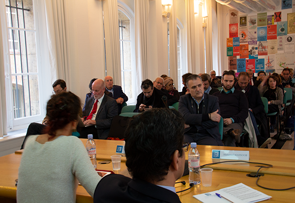 بدأت أعمال الندوة بكلمات افتتاحية ترحيبية ألقاها مدير المركز العربي في باريس، سلام كواكبي، الذي أكد أهمية هذه الندوة في هذا التوقيت حيث نحن أحوج ما نكون فيه إلى التقارب العلمي والأكاديمي بين ضفتي البحر الأبيض المتوسط، وتعريف الأوروبيين بالإنتاج العربي في مجال العلوم الإنسانية العربية والعكس.