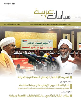صدر العدد الثامن من المجلّة المحكّمة "سياسات عربية" (أيار/ مايو 2014) التي تُعنى بالعلوم السياسية والعلاقات الدولية والسياسات العامّة، ويصدرها المركز العربي للأبحاث ودراسة السياسات كلّ شهرين. وقد تضمّن هذا العدد الدراسات والمقالات التالية: "إسرائيل وحركة المقاطعة" (محمود محارب)؛ و"روسيا الأوراسية وقضايا المشرق العربي" (محمد عادل شريح)؛ و"واقع القانون الدولي وآفاق الحاكمية العالمية في ظل العولمة)؛ و"فرص نجاح الحوار الوطني السوداني وتحدياته" (النور حمد)؛ و"لبنان: الفراغ الرئاسي بانتظار تغيرات إقليمية ودولية" (سعود المولى)؛ و"الفواعل العنيفة من غير الدولة: دراسة في الأطر المفاهمية والنظرية" (شهرزاد أدمام)؛ و"خطر التحالف بين الإرهاب والجريمة المنظمة: العلاقة بين التنظيمات المسلحة وشبكات الاتجار بالمخدرات - شمال أفريقيا نموذجًا" (عبد القادر دندن)؛ و"ربيع اليمن وتحديات التنمية" (قيس الأرياني)؛ و"المعارضة السياسية في المغرب بين الإقصاء والاحتواء" (نور الدين الحوتي)؛ و"الانتخابات البلدية التركية: الناخب يثأر لذكائه" (مروان قبلان)؛ و"المصالحة الفلسطينية: دوافعها وآفاقها" (وحدة تحليل السياسات في المركز العربي)؛ و"اتجاهات الرأي العام الفلسطيني واليمني نحو موضوعات وطنية راهنة" (محمد المصري).