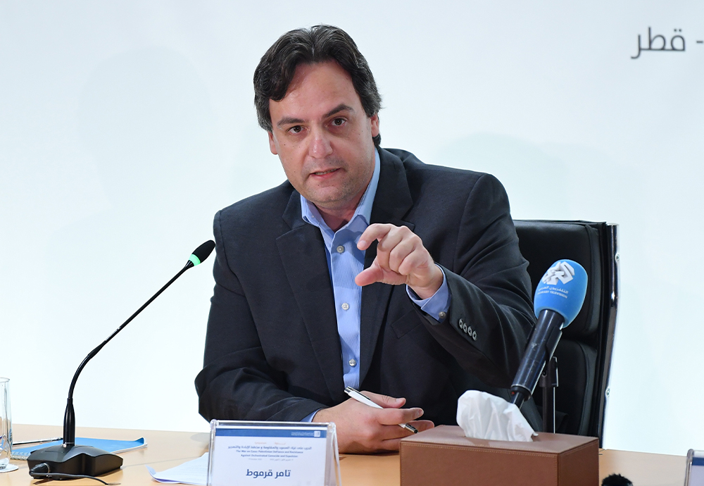 ورصدَ غسان الكحلوت، مدير مركز دراسات النزاع والعمل الإنساني، في مداخلته "عدوان إسرائيل على غزة والانتهاكات الإسرائيلية للقانون الدولي وحقوق الإنسان"، الانتهاكات التي قامت بها سلطات الاحتلال الإسرائيلي وتأثيرها في المدنيين والمجتمع الفلسطيني في قطاع غزة، والتي تشمل استهداف المدنيين على نحو متكرر، وقصف المنازل والبنية التحتية المدنية، واستخدام الذخائر غير المشروعة في مناطق سكنية مكتظة بالسكان، مؤكدًا أنّ هذه الأعمال تتنافى مع مبادئ القانون الإنساني الدولي وتعرّض المدنيين لمخاطر كبيرة، والحاجة الملحّة لتحقيق العدالة ومحاسبة المسؤولين عن هذه الانتهاكات والالتزام بالقوانين الدولية، حيث إن احترام الحقوق الإنسانية والالتزام بقوانين النزاعات المسلحة ضروريان لضمان السلام والاستقرار في المنطقة ولتحقيق العدالة.