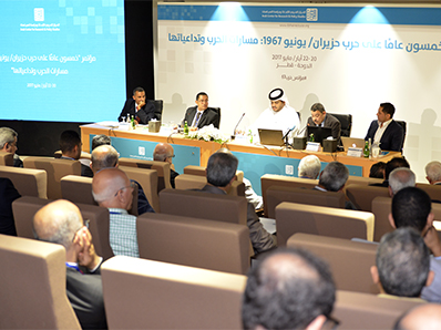 انطلقت اليوم (السبت 20 أيار/ مايو 2017) أعمال مؤتمر "خمسون عامًا على حرب حزيران/ يونيو 1967: مسارات الحرب وتداعياتها"، الذي يعقده المركز العربي للأبحاث ودراسة السياسات على مدى ثلاثة أيام في الدوحة. وتأسّف الدكتور عزمي بشارة، المدير العامّ للمركز العربي في محاضرة افتتاحية للمؤتمر، لأنه طوال نصف قرن، لم يَجرِ التطرّق - على نحوٍ علمي - إلى أكبر إخفاق عسكري عرفه العرب في تاريخهم الحديث، ولم يَجرِ التطرق إلى هزيمة 1967 من منظور العلوم السياسية والعلوم العسكرية، وبأدواتها. في حين صدرت مئات الدراسات في إسرائيل والغرب في تحليل الحرب وأسبابها ونتائجها وتوثيقها، وفي تحليل كل معركة من معاركها، فضلًا عن كُتب السِّير الكثيرة التي كتبها القادة، ووزراء الخارجية، ووزراء الدفاع، وحتى الضباط. وفي المقابل، ثمّة ندرةٌ في الأدبيات البحثية العربية بشأن هذه الحرب.