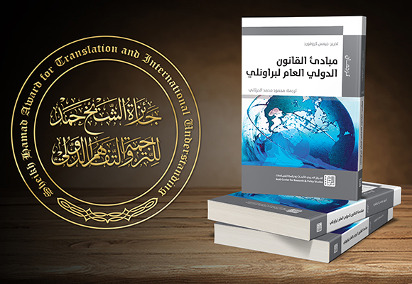 أُعلن يوم 12 كانون الأول/ ديسمبر 2023، في العاصمة القطرية الدوحة، فوز كتاب "مبادئ القانون الدولي العام لبراونلي"، الصادر عن المركز العربي للأبحاث ودراسة السياسات في عام 2022 ضمن سلسلة "ترجمان"، حرّره جميس كروفورد، وترجمه الدكتور محمود محمد الحرثاني، بالمرتبة الثانية لجائزة الشيخ حمد للترجمة والتفاهم الدولي، في دورتها التاسعة، ضمن فئة الترجمة من الإنكليزية إلى العربية، في حين حُجبت الجائزة عن المرتبة الأولى. وتُعدّ هذه الجائزة إحدى الجوائز الدولية المرموقة، ويشرف عليها مجلس أمناء ولجنة تسيير ولجان تحكيم مستقلة.
