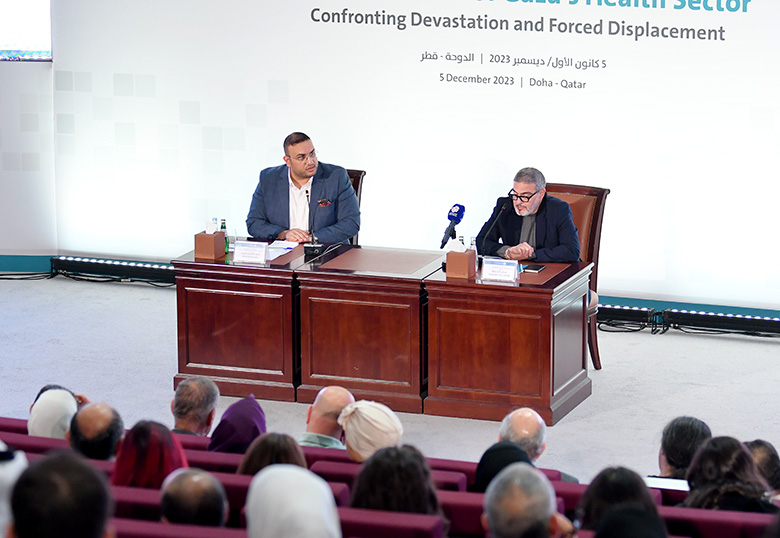 استضاف المركز العربي للأبحاث ودراسة السياسات ومؤسسة الدراسات الفلسطينية، في مقر المركز في الدوحة، يوم الثلاثاء 5 كانون الأول/ ديسمبر، الطبيب والجرّاح الفلسطيني غسان أبو ستة، الأستاذ المشارك في علم الجراحة، وأحد الأطباء الذين عملوا في مستشفيات قطاع غزّة خلال الحروب الأربع الأخيرة، الذي قدّم محاضرة بعنوان "تدمير القطاع الصحي في غزة: مواجهة الكارثة والتهجير"، وأدارها أحمد قاسم حسين، الباحث في المركز.