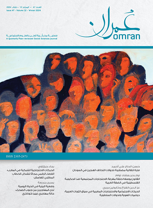 عمران للعلوم الاجتماعية، وتضمّن دراسات متنوعة المواضيع عن الفترة الانتقالية في السودان بعد انتفاضة كانون الأول/ ديسمبر 2019، والحركات الاحتجاجية في فلسطين والمغرب، والحياة اليومية للمهاجرين الغينيين العالقين في المغرب، ومراجعة نقدية للمُنجز البحثي الأنثروبولوجي المتعلق بالمجتمع العُماني، إضافةً إلى دراسة مترجمة عن المواطنة في سياق كولونيالي استيطاني، ومراجعتَين لكتابين.