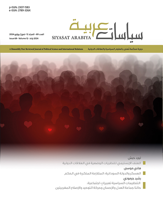 صدر عن المركز العربي للأبحاث ودراسة السياسات ومعهد الدوحة للدراسات العليا، العددُ التاسع والستّون من الدورية العلمية المحكّمة "سياسات عربية"، التي تُعنى بالعلوم السياسية والعلاقات الدولية، وتصدر كلّ شهرين. وقد تضمّن العدد خمس دراسات: "العنف الإبستيمي للنظريات الوضعية في العلاقات الدولية: التحرر من القصة الواحدة" للورد حبش، و"الثقافة السياسية والانتقال الديمقراطي في تونس" لشاكر الحوكي، و"العسكر والدولة السودانية: المتلازمة المتكررة في الحكم" لهاني موسى، و"فقراء الحضر وبروز الإسلام الاجتماعي: دراسة مقارنة بين جماعة العدل والإحسان وحركة التوحيد والإصلاح في المغرب" لرشيد جرموني، و"أميركا اللاتينية والتنافس الدولي المعاصر: الولايات المتحدة الأميركية، وروسيا، والصين: دراسة مقارنة" لعطوة مطير.
