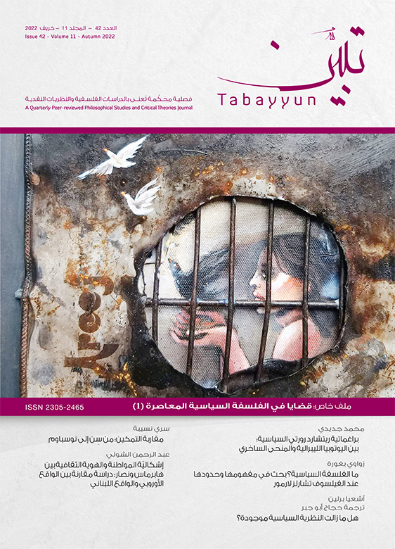 صدر عن المركز العربي للأبحاث ودراسة السياسات ومعهد الدوحة للدراسات العليا العدد الثاني والأربعون من الدورية المحكّمة تبيُّن للدراسات الفلسفية والنظريات النقدية. وتضمّن العدد ملفًا خاصًا عن الفلسفة السياسية المعاصرة، يشمل الدراسات التالية: "براغماتية ريتشارد رورتي السياسية: بين اليوتوبيا الليبرالية والمنحى الساخري" لمحمد جديدي، حيث سعى الباحث إلى رصد مظاهر توطيد البراغماتية الجديدة لصلتها بالفكر السياسي من خلال تتبع مسار الفيلسوف ريتشارد رورتي في مطابقة منحاه الفلسفي مع الليبرالية الديمقراطية، عبر تأكيده الأولويات التالية: الديمقراطية على الفلسفة، والأمل على المعرفة، والتضامن على الموضوعية. وذلك انطلاقًا من النظر إلى الممارسة السياسية الأميركية بوصفها تجربة في الزمن والتاريخ، بعيدًا عن كل محاولة لتأصيلها نظريًا. كما عَمَدَ الباحث في دراسته الإجابة عن سؤالين: هل أحدثت أطروحات رورتي النقدية آثارًا في النظريات السياسية الأخرى؟ وهل نعثر لدى رورتي على ضرب من الأثر البراغماتي للفكر في الواقع مثلما كان الأمر لدى جون ديوي؟ والرأي الذي دافع عنه جديدي هو أنه من الصعب - في كثير من الأحيان - تقريب مواقف رورتي من آراء أستاذه جون ديوي؛ لذلك يجدر فصل آرائه عن آراء أسلافه ومن بينهم ديوي ومُجَايلوه من البراغماتيين، والإقرار بالتباعد بين هذه الآراء والواقع الأميركي وحقائقه السياسية، تمامًا مثلما يكون من المتعذّر تفهّم موقف رورتي الموزع بين التمسك بقيم الليبرالية من حرية وهوية أخلاقية واعتزاز بالماضي من ناحية، والدعوة إلى العدالة الاجتماعية والتضامن والتقدم، وهي قيم قمينة بنزعة تقدمية، من ناحية أخرى.