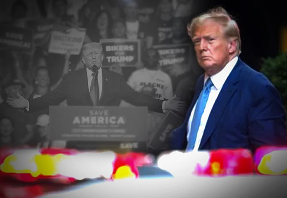 وبدلًا من أن يتوارى ترامب بسبب التهم التي تلاحقه، والتي بلغت حتى الآن 91 تهمة جنائية متضمنة في أربع لوائح اتهام، فهو يسعى لتوظيفها ليكسب التعاطف والدعم الشعبيَين[4]، واعتبار التهم الموجهة إليه مؤامرة يستهدفه بها الديمقراطيون، والرئيس بايدن شخصيًا، حتى لا يترشح أمامه في انتخابات 2024، بعد أن "سرق منه الرئاسة عام 2021". ويبدو أن قواعد واسعة من الحزب الجمهوري تأخذ بمزاعم ترامب هذه، خصوصًا بعد أن صوّرها على أنها لا تستهدفه وحده بل تستهدف أيضًا جمهور مناصريه[5]. وبحسب استطلاعات رأي، ما زال 57 في المئة من الجمهوريين يعتقدون أن بايدن لم يجرِ انتخابه بطريقة شرعية[6].