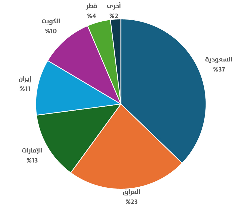 تدفقات النفط عبر مضيق هرمز بحسب الدولة المصدّرة (من أصل 14.2 مليون برميل يوميًا) في الربع الأول 2025