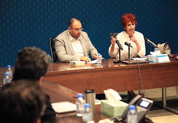 In the second part of the lecture, Al-Bizri presented the characteristics of the leftists concerned, and the nature of their intellectual activities, their representation of opinion or a trend, and the variety in their intellectual careers. Then she explored the parties to which those intellectuals belonged, and the reasons for excluding other parties from the study, despite being self-described leftists.