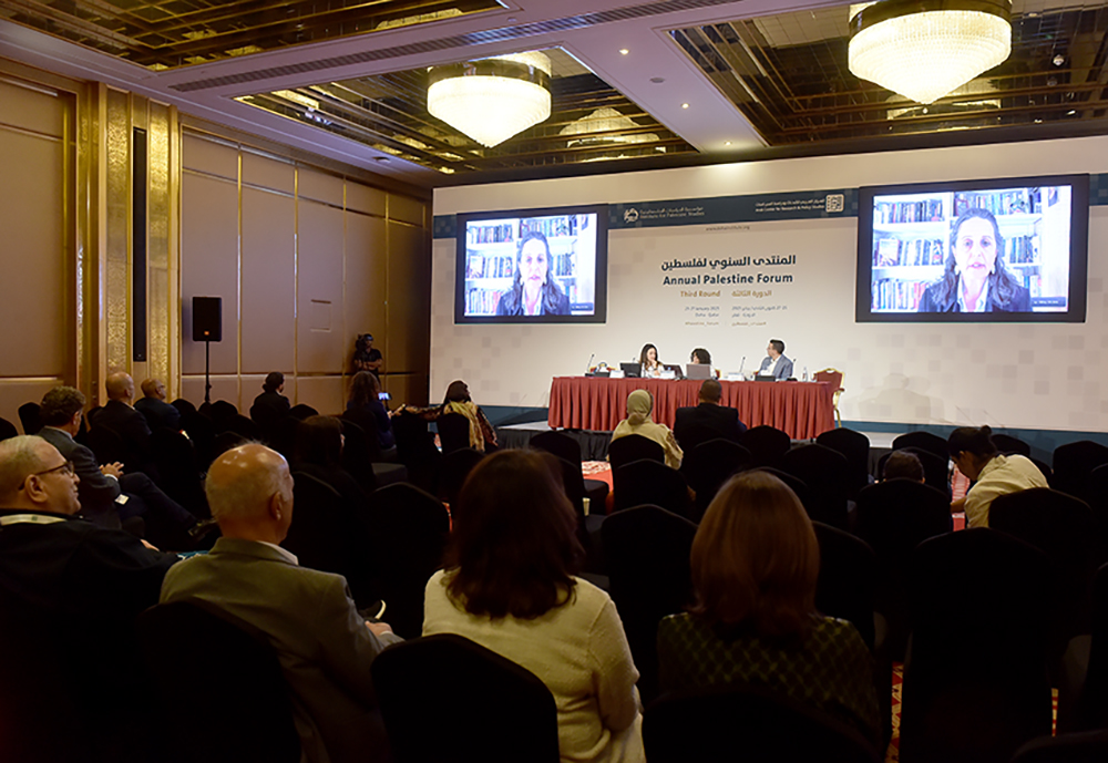 On Sunday, 26 January 2025, the second day of the Annual Palestine Forum continued with a full schedule of presentations in addition to an evening symposium. Dozens of researchers shared their work on wide-ranging topics such as Palestinian citizenship within Israel, Palestinian women’s experiences under genocide, aesthetics in Palestinian resistance, Jerusalem, emerging settlement trends in the West Bank, and the critical ramifications of ongoing attacks on refugee camps.