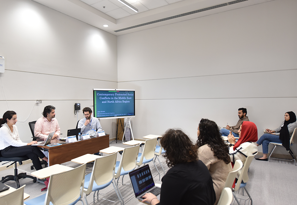 In the Conflict and Security Studies sessions, Krekar Mustafa began with his paper “A Century of Failure: The Kurdish Response to State-Building in Iraq and Syria,” which explored the determinants of state-fragility in Iraq and Syria, examining the Kurdish response to state-building. Ahmed Elsayed followed with his paper “Politics of International Legitimacy of Armed Groups,” in which he offered novel insights for the study of non-state actors' politics of international legitimacy, conducting an analysis of the Democratic Union Party and its armed wing (PYD/YPG) in northern Syria. Amena ElAshkar next presented her paper “Population-Centric Counterinsurgency: The Case of Israel in South Lebanon and Palestine,” examining the determinants of people choosing to join the side of counterinsurgents by studying the cases of South Lebanon Army militia (SLA) and Palestinian Authority Preventive Security Forces (PSF). Finally on this topic, Tarek Hamoud’s paper, “The Designation of Hamas as a Terrorist Organization by Western States: A Theoretical Approach,” argued that the designation of Hamas as a terrorist organization is still motivated by politics rather than academic theories.