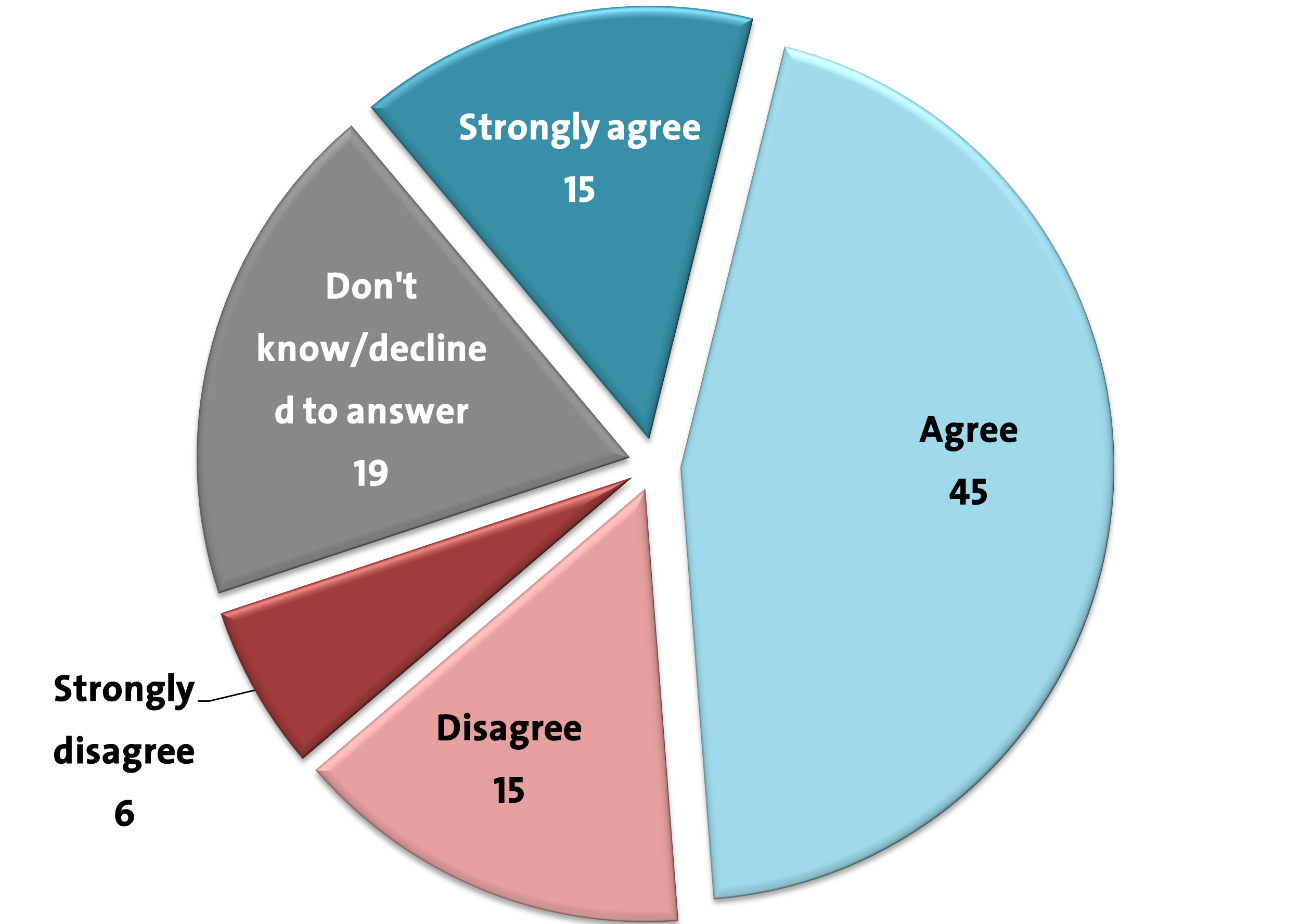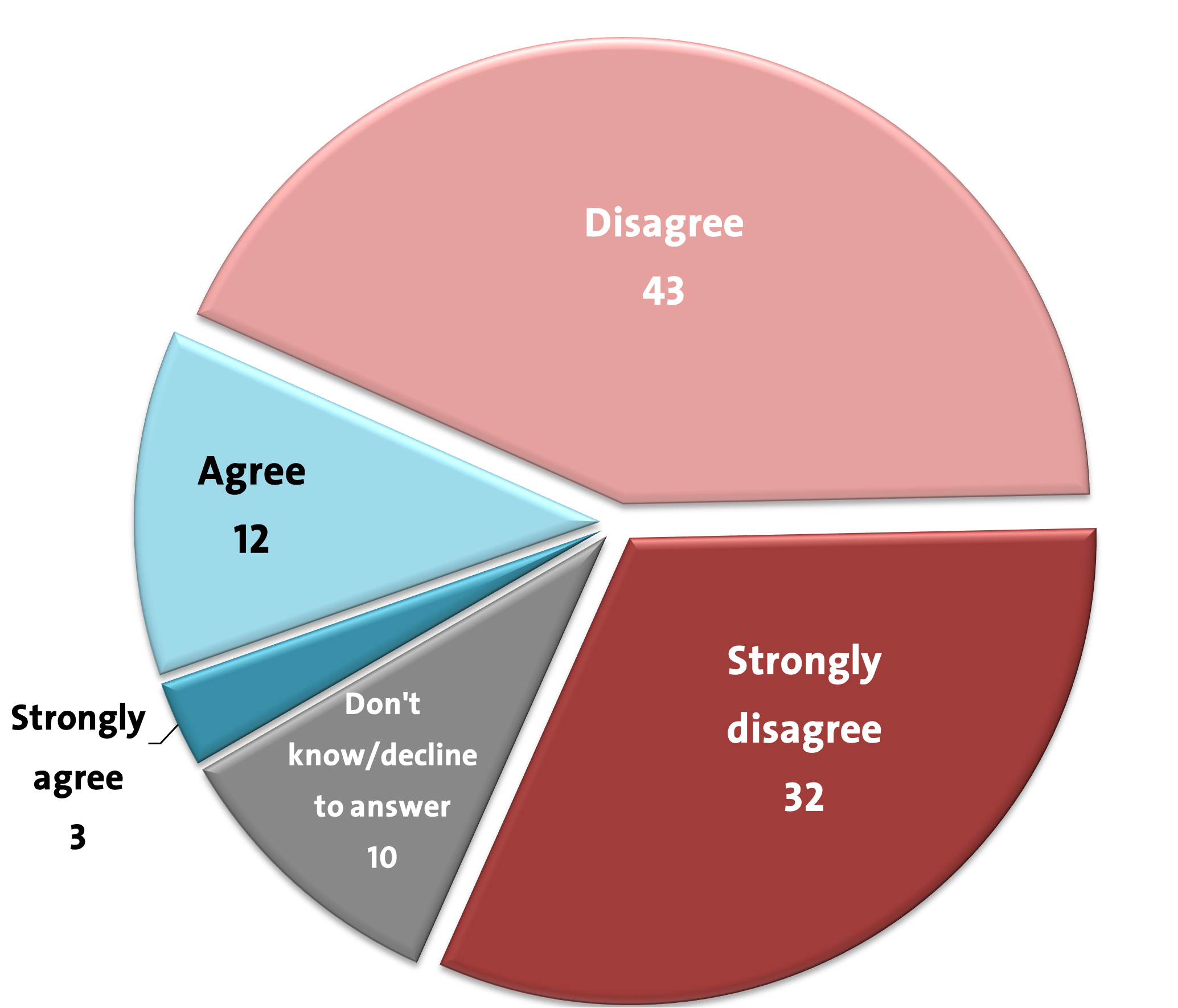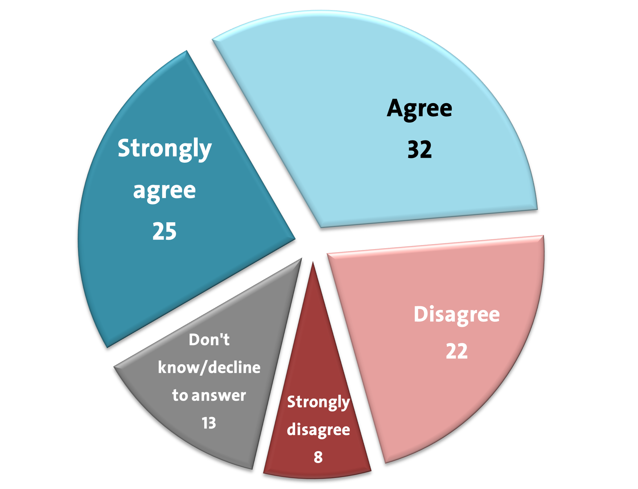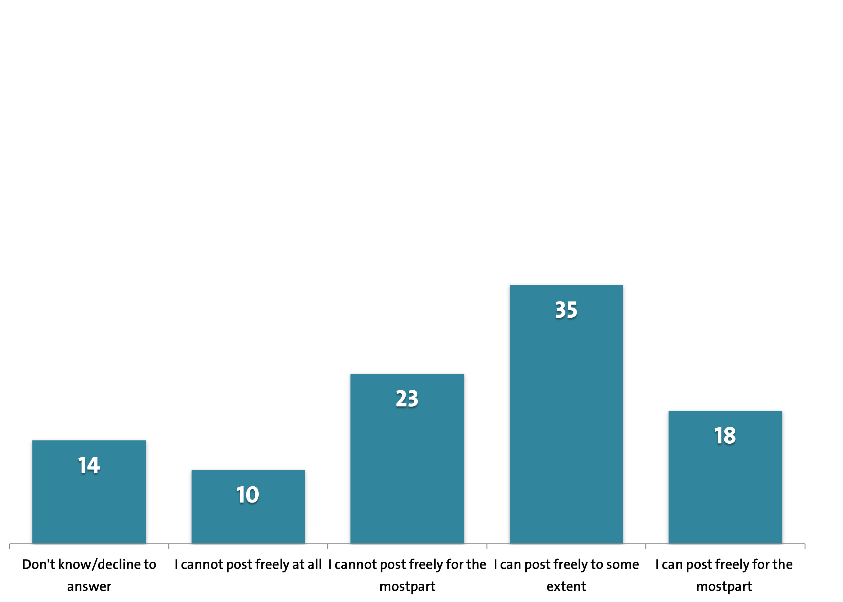 Seventy-six percent of respondents agreed, to varying degrees, that they can post content on social media that criticizes the government without fear of repercussions (figure 8c).