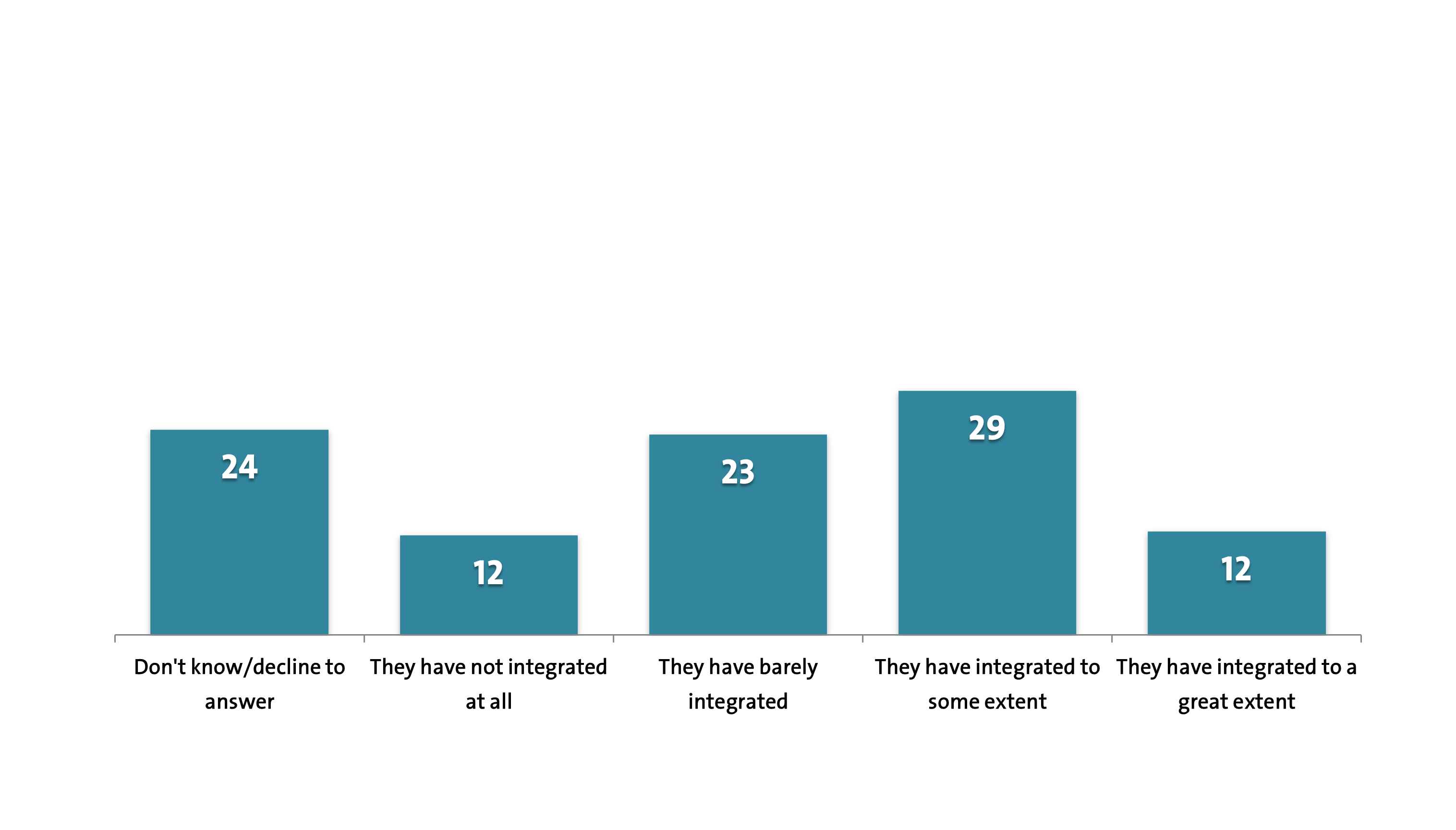 Sixty-four percent of respondents believe that the Syrian people have succeeded to varying degrees in national integration over the years, compared to 12 percent who that said no integration has occurred.