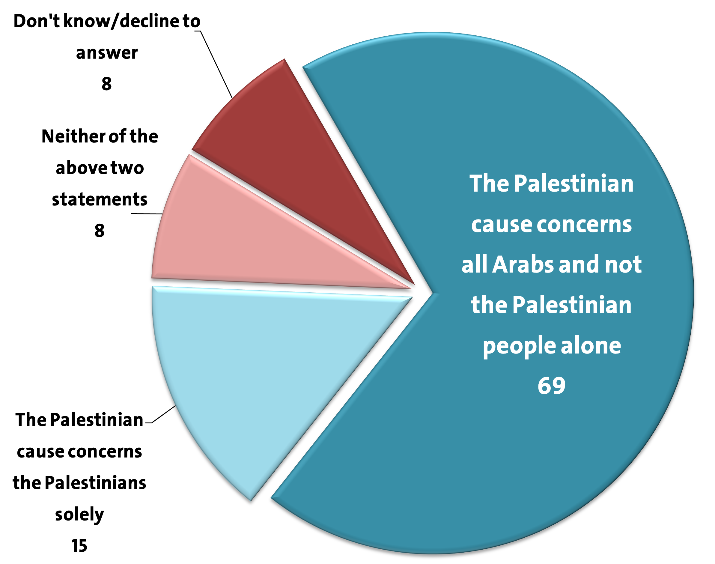 Sixty-nine percent of respondents said that “the Palestinian cause concerns all Arabs and not the Palestinian people alone,” compared to 15 percent who that said it concerned Palestinians alone (figure 6a).