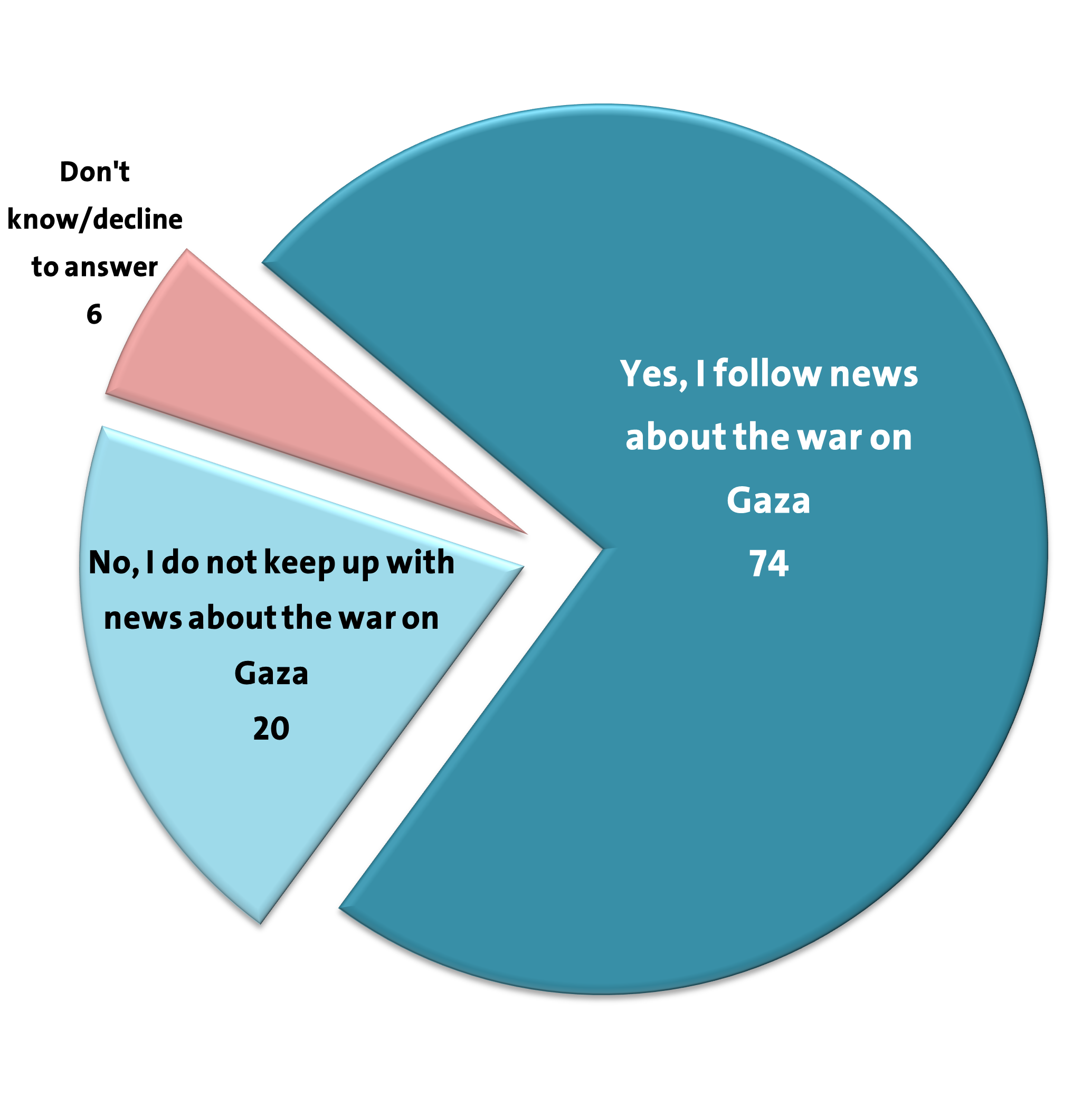 Seventy-four percent reported that they are following the Israeli war on Gaza (figure 6e). Respondents cited several causes for the continuing war, including US military and political support for Israel and Arab countries’ lack of support for Gaza.
