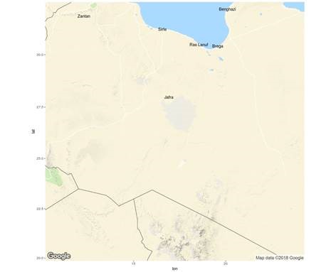 During the months following the February 2011 uprising, Libya’s Oil Crescent was caught in a tug-of-war between Gaddafi loyalists and armed revolutionary battalions. By 2012, and up to the second half of 2013, relative improvements in the region’s stability had allowed the export of crude oil to begin again and return to pre-revolutionary levels. By July of 2013 however, an armed group calling itself the Petroleum Facilities Guard (PFG), under the leadership of Ibarhim Al Jadran of the Magharbeh tribe, took hold of vital installations in the Oil Crescent and quickly put an end to the oil exports for a period of more than two years. In doing so, the PFG was given political backing and propaganda support by the same constellation of groups which would come out in support of the Karama Operation. A December 2014 attempt to recapture these installations by force, led by a group which called itself “Libya Dawn” or “Fajr Libya” was ultimately unsuccessful[2].