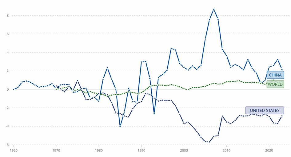 - Relatively recently, China has overtaken the US in international trade. China’s total all-sector direct investments in 152 countries amounted to USD 85.3 billion in June 2024.[2]